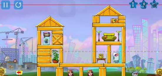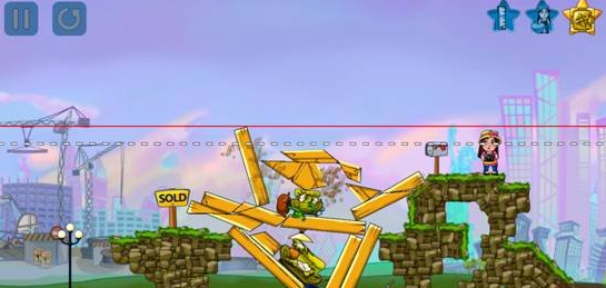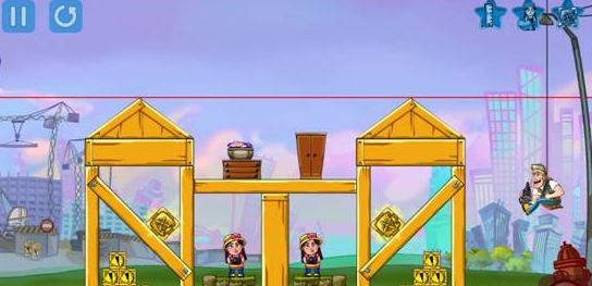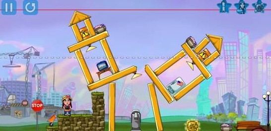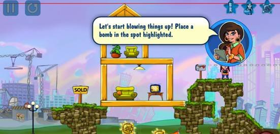 游戏的设计还是很重要的,这款游戏就比较人性化,开始游戏之前,爆破达人会拿着望远镜观察下建筑,在建筑上化个虚线,当建筑的最高顶点的红线低于这条虚线,变成绿线时,游戏也就顺利过关了。而且在游戏的左下方还有各种不同的爆破装备,玩家可以点击其中一个,进行安放,当然,在同一场游戏中,玩家也可以使用各种不同的爆破道具。