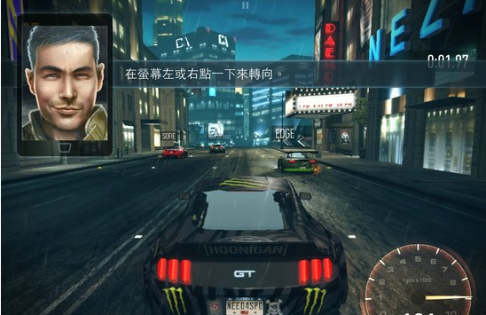初始的操作是点击屏幕的左右两边来控制车辆转向,向上滑动使用氮气,向下滑动漂移,不习惯的可以在设置里更改成重力感应控制方向或者滑动屏幕转向。而且在体验的过程中没有感觉到卡顿现象,操作还是挺流畅的。