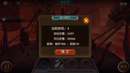 当前战斗结束后出现统计界面,可以看到伤害数据以及奖励。