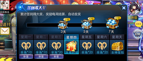每天的签到就可以获取一定数量的幸运羊角,利用幸运羊角就可以对象相应的装备了哦,话说每天的签到奖励还是不少的哦。