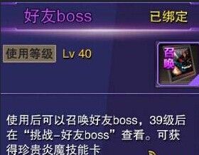 当你达到40级之后才可以使用召唤卡,好友副本的输出时间为70秒,超时之后副本会关闭。