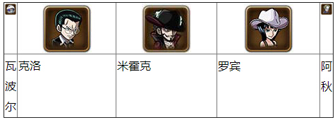 路飞带有主角光环,最强的肉盾毋庸置疑,大招还可致对方眩晕;伊娃科夫是奶妈兼输出型伙伴,可使全队物理攻击力得到提升,并攻速加快,还可补血,神级人物的存在;佐罗是强力前排,米霍克强力中排,罗宾是强力后排,三个都是物理型伙伴,搭配伊娃科夫简直是如虎添翼,并且除了路飞外,其他4个伙伴大招都是可以打到对手所有伙伴的。