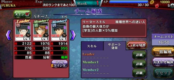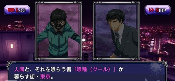 游戏剧情有别于原作,因海外喰种入侵,由此东京内争斗中的“搜查官”与本地“喰种”联手对抗外敌,所以游戏中能超越原作限制,玩家可以在“喰种”和“搜查官”间选择自己喜欢的角色组成混合队伍。每一大关卡前后会简短来一小段剧情对话,目的为了让玩家融入剧情,相信看过原作的话会更有亲切感,也挺符合手游的快节奏要求。