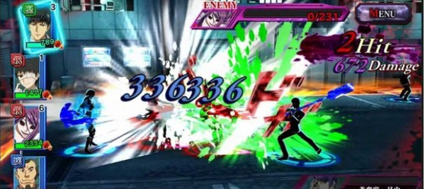 先来看看简便却畅快的战斗系统,玩家点击角色向后拉,放手后即可像桌球般移动反弹和攻击敌人。有趣的是当碰撞到己方角色时能发动连携效果,且区分喰种连携和搜查官连携。喰种连携共有 3 阶段,操作己方喰种撞击队友时通过降低对方体力来强化自己,一阶段为治愈效果,二阶段扩大墙壁行动范围,三阶段是附带搜查官武器(クインケ)破损、强化攻击力,三阶段结束时更能发动“赫子狂化”并获得一次再动。搜查官连携则是撞击时连带让队友原地发动攻击,但只有一定的射程。实际操作效果打击感拔群,很容易让玩家停不下来,特别是点击头像发动技能后,再触发队友连携或以墙壁反杀,酸爽的单人 OTK 不是梦。