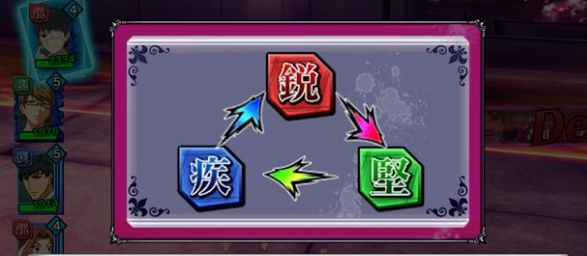 此外化身为卡牌的角色有着特定的属性,除了体、攻、速,还设定有攻击和基础类型。攻击类型共 5 大类,分为格斗、范围、贯通、射击和反射,各有各的优点。玩家把喜欢的 3 个角色组成队伍即可挑战故事模式。需要注意的是基础类型分为锐、坚、疾 3 类,相克攻击力加强 50%,相反则会减 25%,因此需要注意队员属性构成。另外卡牌游戏类的强化、限界突破、抽卡等等也一应俱全,相信日系手游玩家都能轻松上手。