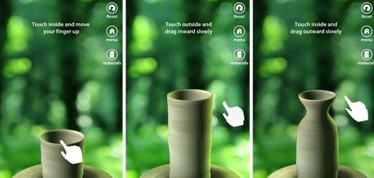 初次进入游戏,会有简单的操作介绍。在瓶身内上下拖动可以减少或增加陶罐的高度,水平方向由外向内拖 泥塑过程动,可以缩减瓶身的宽度,反之由内向外拖动则可以增加瓶身宽度。操作过程中拖动要缓慢,越着急快速的拖动,反而效果不好。