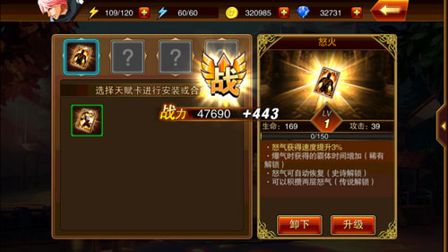 在天赋卡界面,点击安装,即可将天赋卡装备在角色上。如图,装备天赋卡后,战力会有较大提升。