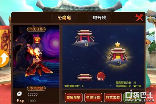魔塔:这是小编比较推崇的一个进阶丹获取方式,建议大家能爬多高是多高,然后利用每天系统给予的三次重制机会和快速扫荡功能来快速刷塔,魔塔攻略的层数越高,获得的奖励自然越多,基本上这是每天的必做活动。此外,参与魔塔挑战除了可以获得进阶丹之外,还能够获得大量的经验、银币、刷新符等道具,《推倒三国》后期主要的升级方式和银币来源就是魔塔挑战了。