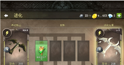 进化这个概念玩过同类游戏的玩家应该比较懂得,进化就是把装备升星变得更强,武器外形也会有所改变。在地牢猎手5中武器等级满级后就可以进行进化了,进化需要消耗进化材料。进化还需要进化石,而且进化需要的材料元素要相同。