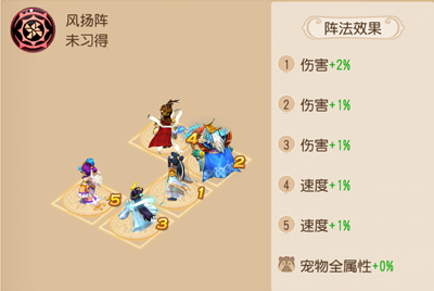 龙飞阵(攻防兼备):全能型阵法,无论走爆发路线或是控制辅助路线的队伍都可以选择它。