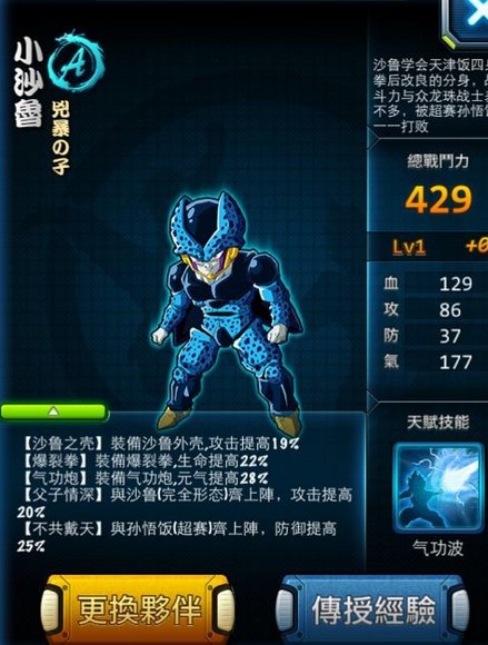 爱哭鬼“小孙悟饭”从属性上来说是物理攻击类型,具单体伤害技能。持续性输出非常给力,对于喜爱单打独斗的伙伴来说,实在是不二的选择。