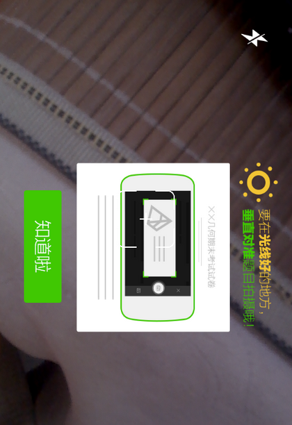 3、点击过拍题功能后,就会转到拍照的功能界面,这个时候只需要把摄像头对转好题目,拍下照片即可。然后可以用方框来选择题目。锁定好了点击对号进行识题。