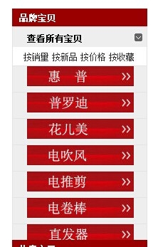 三、装修自带模板:只需要将几个常用的点出便可。 比如左侧用收藏店铺,宝贝排行榜,宝贝分类。 右侧用宝贝推广便可以成为一个单独的店铺。