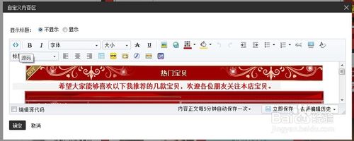 二:百度下载:下载一些你觉得好看的模板,我们可以将模板代码放在装修店铺内的自定义内容区。点击我要编辑-右上角的码源-将代码粘贴到码源编辑器-点会码源便会显示出内容。
