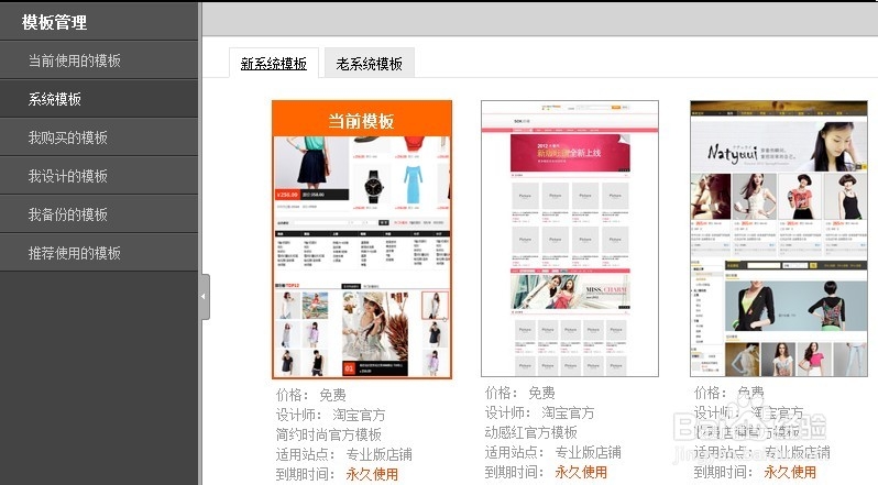 进入系统模板里面,有新系统模板和老系统模板,新系统模板给出了三种样式,老系统给出了两种样式,都是是永久免费的。