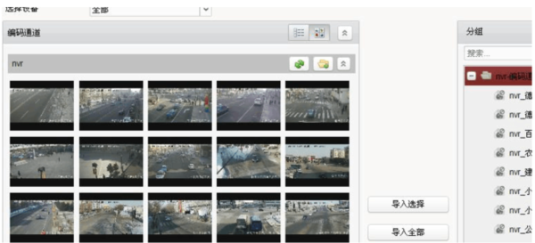 在分组选项中的编码通道下点选导入添加各监控点的摄像机。