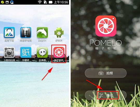 1)首先打开【柚子相机】,然后在【美化】中点击进去。(如下图所示)