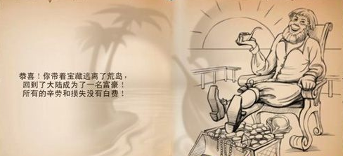 大结局:【烟】+【白帆】=商人,然后【人】+商人=救赎!这样就完美大结局了,然后你会被救出去,由于拥有宝藏,所以你拥有无尽的财富,接着就能够安享晚年了,多么美妙的结局啊!