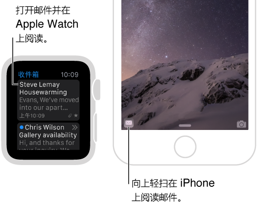 回复电子邮件: 需要使用 iPhone 来编写回复:只需唤醒 iPhone,然后向上轻扫锁屏左下角的“邮件”图标。