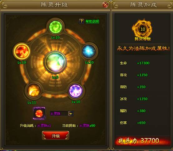 4、当外围五个阵灵都达到一定等级时,还能获得阵灵加成效果。