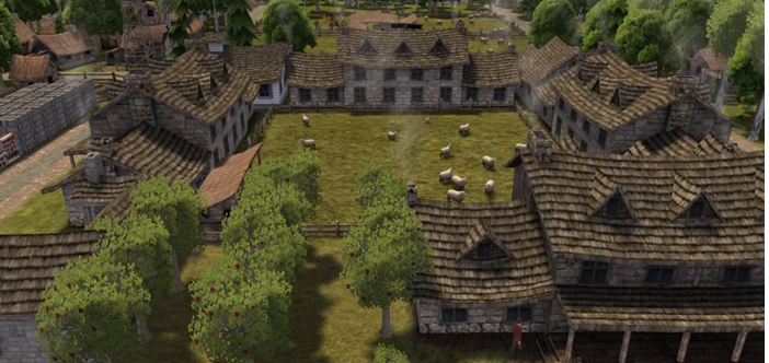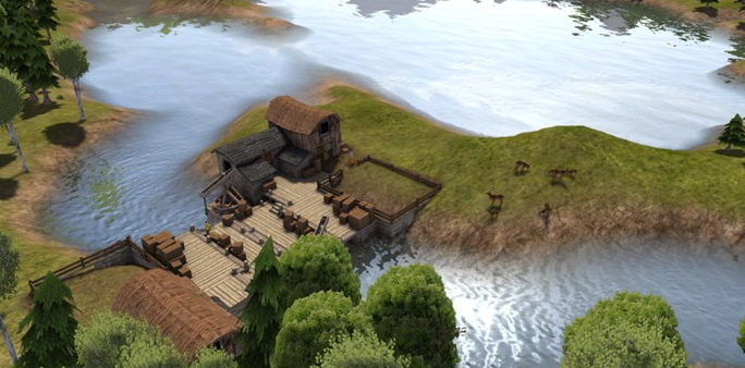 8.度过了初期阶段,就可以逐渐增加房子的数量。4个种植园,1个牧场,1个渔业码头,1个采集小屋,1个狩猎小屋,1个果树园大约能养活100人左右。