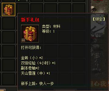 金砖(小)*2,双倍经验卷轴(4小时)*1,天山雪莲(中)*1,副本卷轴*2