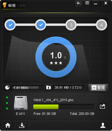 6、最后一步,再次打开“极易一键重装系统”软件,把之前备份的数据恢复回新系统里面。(全程下来基本不用用户干扰操作,只需要选择好需要安装的系统,真正做到一键重装系统)