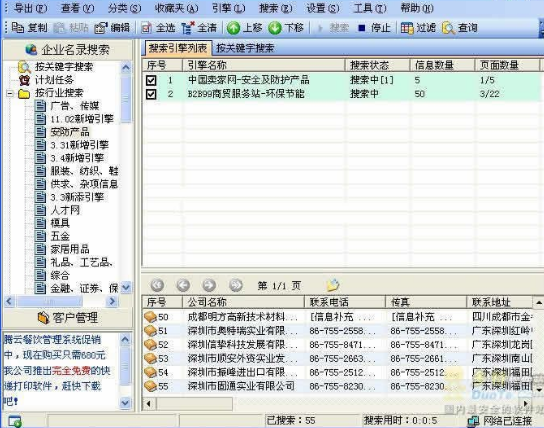 企业名录用户可以自行添加对指定网站内容的搜索。同时软件数据保持在线更新,随着名录网站的结构的变化而变化,保证您搜索到最新最全的数据。飞翔企业名录搜索王提供强大的数据查询和处理功能,用户可以方便的查询搜索到的名录数据,并可以打印信封,打印标签等。企业营销的最大问题是什么——客户数据,其次是什么——客户数据的及时更新,再次是什么——客户数据的查询及管理。飞翔企业名录搜索王很好的解决了这三个问题,飞翔企业名录搜索王针对网络上众多的的公司信息资源进行搜集整理,分地区、按行业精确的搜集企业名称、联系人、地址、电话、传真、网址、 EMAIL 地址、邮编、企业简介等,并进行整理集中,形成客户资源。是企业进行网络营销、查找客户必不可少的工具。