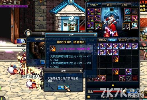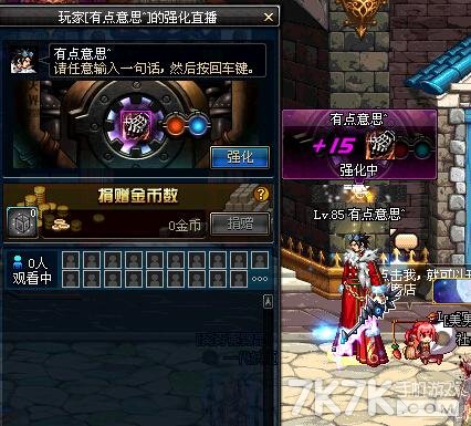 先把需要+11的武器强化到10,很容易,不多说。然后把一把【相同的武器】(不同也OK,等级不要相差太大)强化至+9,然后继续扔凯丽,如果失败就会掉到+6,你就可以扔+10的装备了,正常情况下,成功率65%+;如果成功+10,换下一把【相同的武器】。还有一个保险一点的办法,就是把失败后变成+6的装备继续扔,如果失败就会变成+5,这个时候在扔+10的装备,成功率会相对提高,如果成功,继续如上操作。<千万不要因为+11失败碎掉了就继续丢下一把+10的,成功率一般不会太大,我试过,至少第三把才会成功>