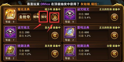 如下图就出现了强化圣器的界面,点击+号或者自动添加就可以将经验法典放上去强化圣器。