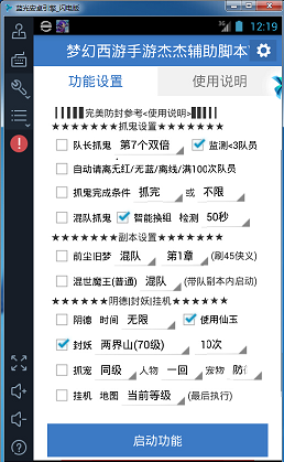 第三步,在这个界面勾选你需要的选项,顺便请仔细阅读使用说明把模拟器调整到脚本支持的分辨率。如图: