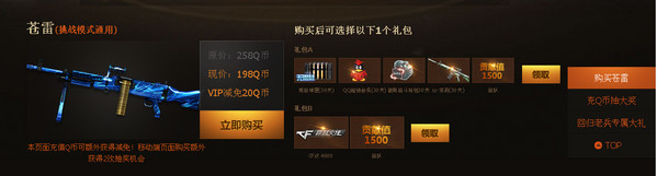 2通过本活动页面充值Q币,单笔充值满100Q币购买M240B-苍雷减5元,单笔满200减10元,最高累计可减免10元(注意:累计充值100不可以参加减免活动)