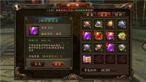 元宝充足的情况下,商城每天可以买3个三级石头,二级宝石可以买在第一页和第二页买10个,第三页可以买2个。全部买了一天就可以凑出一套四级宝石,战力猛涨!