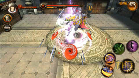 4、风华绝代:角色随着撑开的伞在低空高速旋转,从伞中飞出的利剑刺入周围敌人的身体,高频率的造成大量伤害。