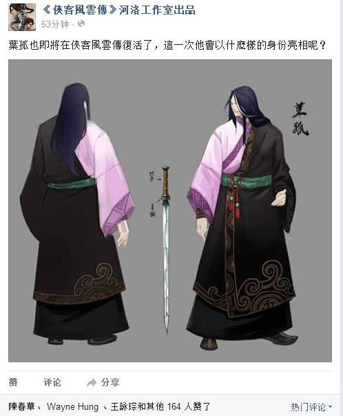 《侠客风云传》的DLC内容迟迟没有官方消息,虽然有台媒的爆料,但仍无法阻挡玩家对于DLC内容的好奇,不过大家也不必着急,质量和速度往往冲突,河洛工作室也知道玩家对于DLC内容的迫切心情,在官方脸书上更新了一张人设图,崆峒派弟子叶孤。