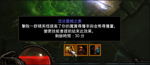 Nephalem Valor涅法雷姆之勇击败一群精英怪提升了你获得魔法装备及金币的概率。