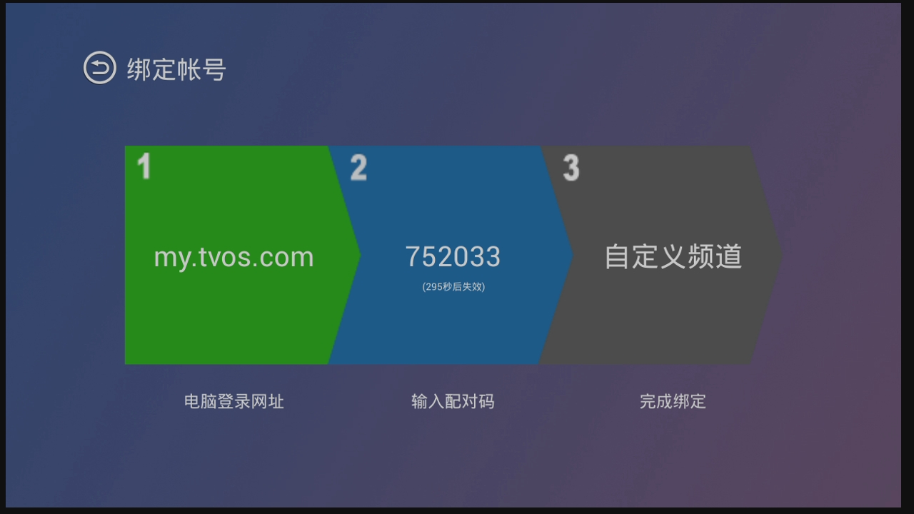 以在设备(电视或者盒子)终端打开泰捷视频,找到“设置”选项,选择“账号绑定”后可看到6个数字的配对码。(注意:配对码需要在300秒的失效内输入,否则绑定不成功)
