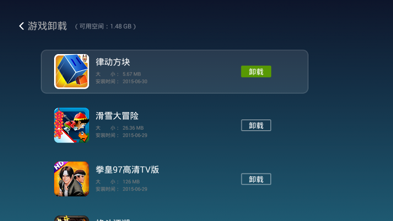 不想玩的游戏可以进入此界面及时卸载,并可以看到当前剩余空间。