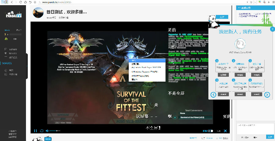 然后,主播直播间目前功能还比较单一、只能送竹子,估计panda.tv刚上线测试还要慢慢添加,在就是视频插件无切换线路这些功能,可能以后也会添加吧,额,弹幕字体较大,感觉要调小点不然弹幕多了视频直接挡完了。