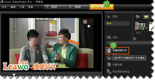 看看效果吧。由于图片和视频画面内所处理的“关谷神奇”的面部都较小,因此看到的马赛克效果不太明显哈。呵呵,大家可以按上述方式操作实践一下,就容易做出来了。最后,弄好了就点击“分享”里的“创建视频文件”输出,大功告成。