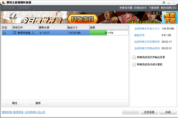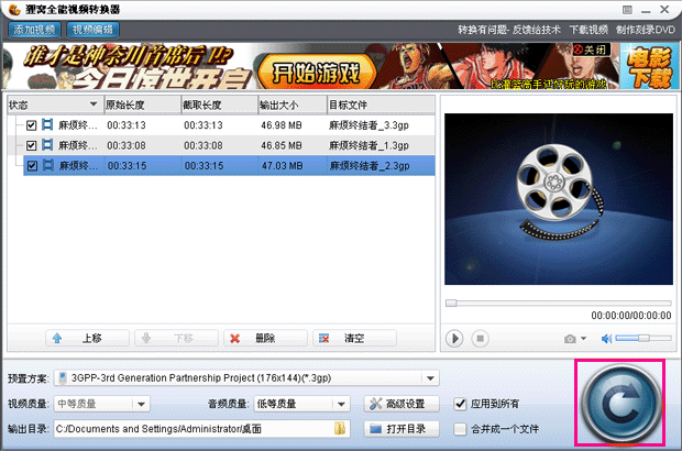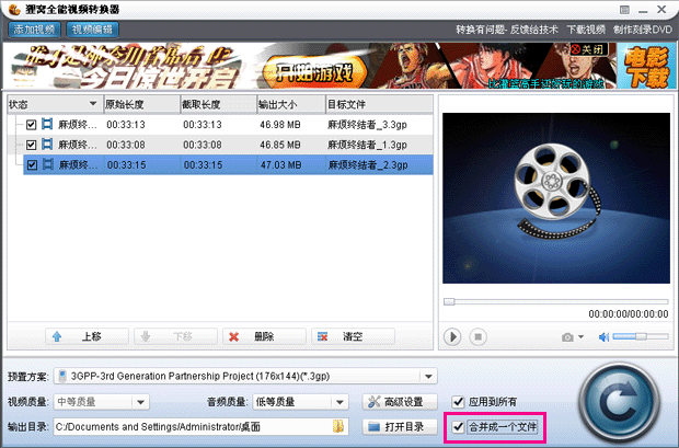 答:我们可以用狸窝全能转换器进行合并,不管这几个文件都是3gp格式,mp4格式,还是不同格式的文件合并都是可以的。下面我们一起将下载的一部电影的几段合并成一个文件。
