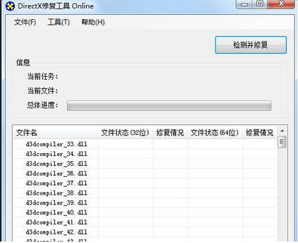 2、该程序采用了傻瓜式一键设计,只要点击主界面上的“检测并修复”按钮,程序就会自动完成校验、检测、下载、修复以及注册的全部功能,无需用户的介入。