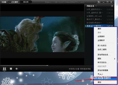 首在百度里搜自己喜欢的电影用快播播放,我想信大家都知道快播。如搜索西游记之大闹天宫电影快播。如图