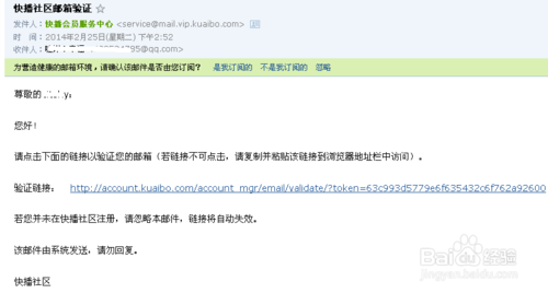 登陆您填写的邮箱账号,接收邮件。如下图找到 快播社区邮箱验证,点击激活即可