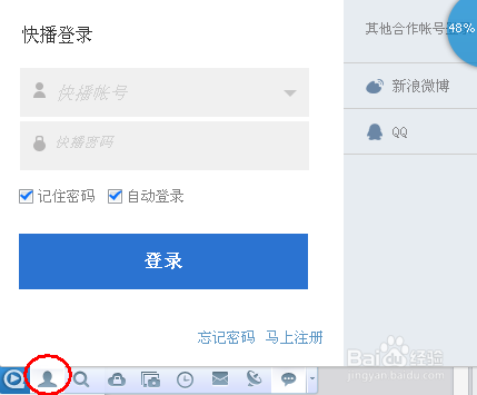 方法2. 打开播放器,点击“会员”图标就是那个人头头像的图标,会出现快播登录。可以设置自动登录