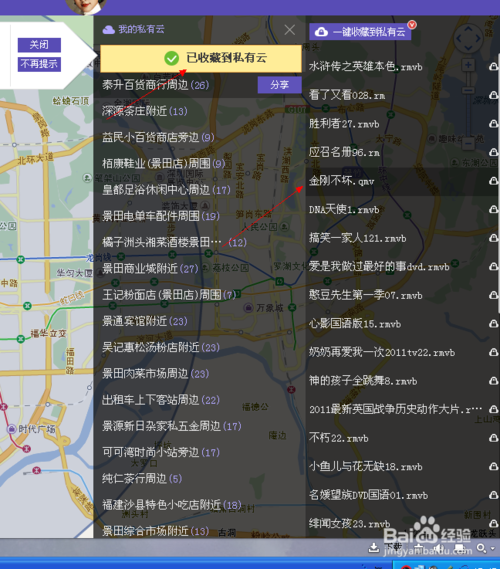 点击快播悬浮窗上面的“雷达”进入“超级雷达”(没有悬浮窗的右键快播托盘图标选择“显示浮窗”)。在这里把插把插到你想搜索的地方即可。然后把你喜欢的资源收藏到快播私有云里,如果私有云列表没有本地刷新一下列表播放即可。