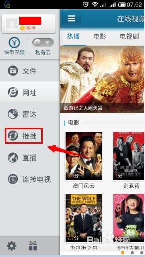 点击快播放左边的【三杠】再就点击【推推】如下图所示: