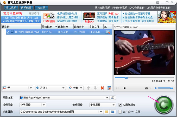 点击软件界面右下角转换按钮生成截取的视频片段