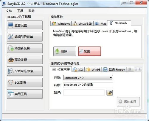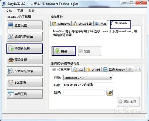 选择“添加新条目”,然后选择“NeoGrub”,点击“安装”。