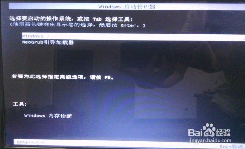 1重启电脑,可以看到多了一个启动项“NeoGrub引导加载器”,选择该项enter,然后选择“install ubuntu”,另外两项分别是“重启”和“关机”,是为了防止安装出错而设的,这个在之前的menu.lst配置文件中已经设定好了。